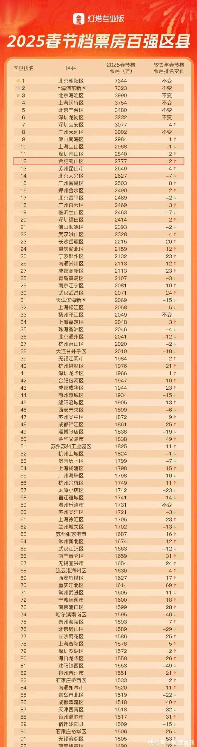 春节假期刚休止电影市集便传来佳音据灯塔专科版数据娇傲死心2月6日19时25分2025年春节档新片票房(含点映及预售)突破112亿元此外2025年中国电影市集累计票房超北好意思票房收货位列全球第一合肥春节电影市集火热数据娇傲合肥市春节档电影票房达1.048亿元再创历史新高位居寰球第14位字据灯塔专科版发布的2025春节档票房百强区县名单蜀山区知道亮眼 死心2月6日蜀山区以2777万元票房破裂积年春节档电影票房记载不仅领跑全省,还位列寰球第12较昨年高潮两个位次展现出蜀山区在文化浮滥界限的滂沱活力