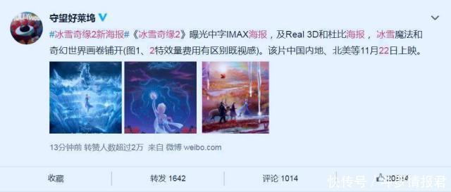 细目国内和北好意思同步上映《冰雪奇缘2》除外,电影导演也发来贺词。而今天发布了《冰雪奇缘2》的中字海报。