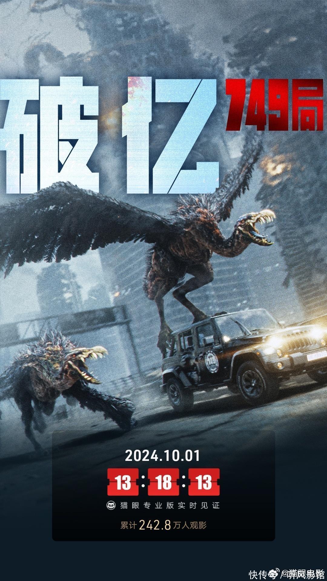 甩手到10月1日13:18分,《749局》票房破亿,成为国庆档首部单日票房就破亿的影片。
