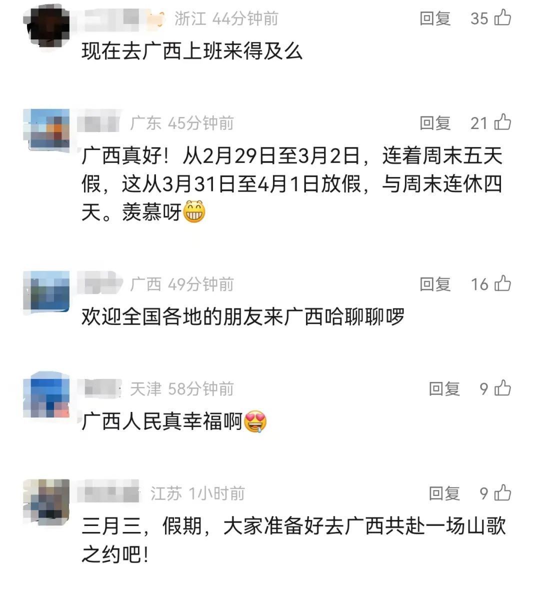 2月26日开云kaiyun中国官方网站,广西壮族自治区东谈主民政府办公厅发布2025年广西三月三假奉告:3月31日至4月1日休假,与周末连休。