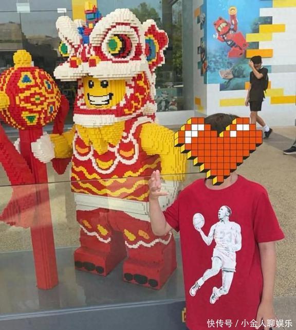 像片里,7岁的张礼承靠在一个大大的积木模子傍边,手里还摆着个险诈的姿势,看着还挺酷的呢。