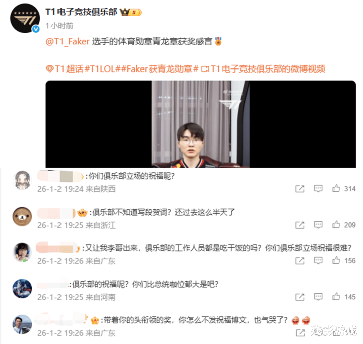 总统授勋Faker,T1被艾特也没祝贺!
