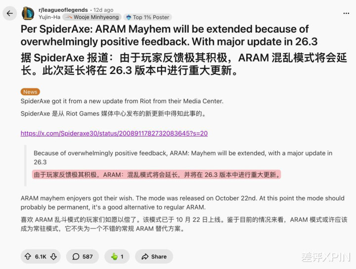 该说不说,这段时分,LOL 玩家们大要回到了十几年前刚往还游戏时,阿谁天天查攻略、共享套路的年代,到处都是崭新感,哥们每天上班都心痒痒念念整两把。
