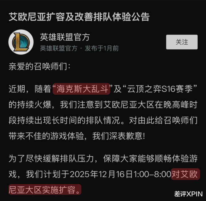 直到上个月,官方决定给一区扩容服务器,列队情况才获得缓解。