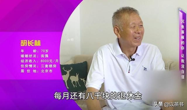 胡长林什么来头?纯正北京土著,手里攥着三套房产,光屋子就值上千万,每月退休金8000块,妥妥的老年相亲阛阓顶配。