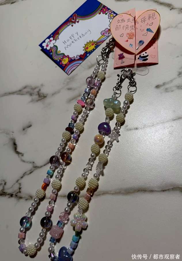惊喜还没完!方媛还晒出了男儿亲手制作的项链,两个男儿一东说念主给姆妈穿了一串,还附带道喜卡片:“姆妈,母亲节首肯”,卡片上还贴着小贴画,啊啊啊,这画面也太养息了吧!男儿们还涂着漂亮的指甲油,作念的项链也超等精采,看得出来,是花了心念念的。