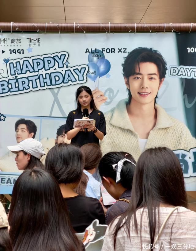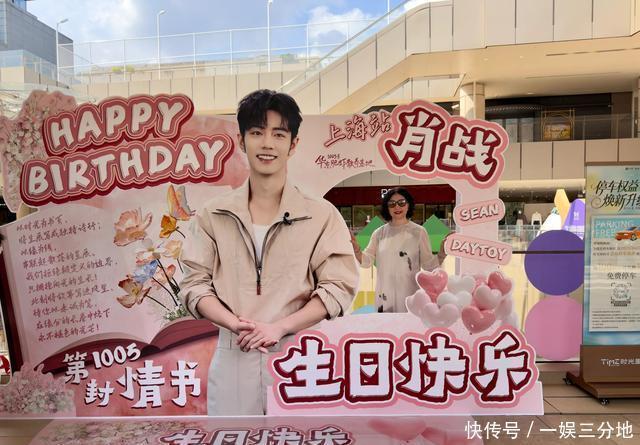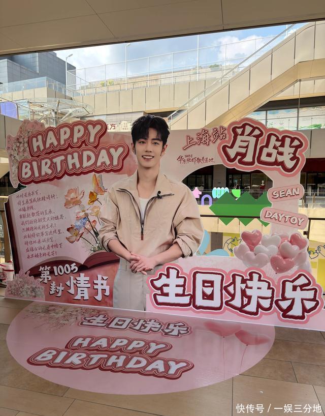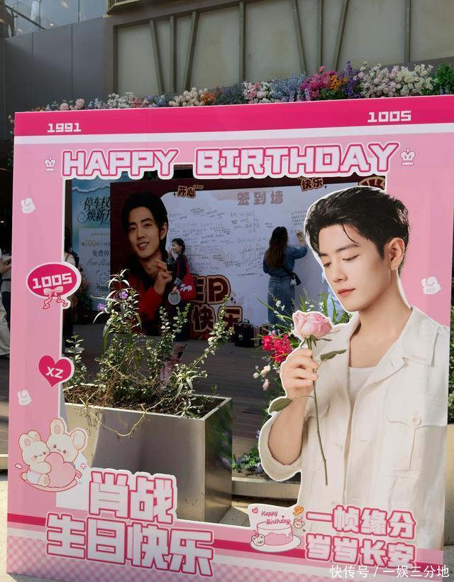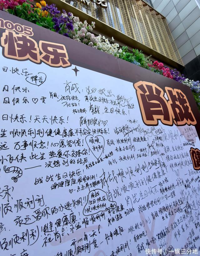 在上海保利·时光里,处处可见肖战的巨幅相片,签到墙上写满了诞辰祝颂。