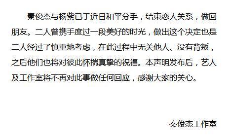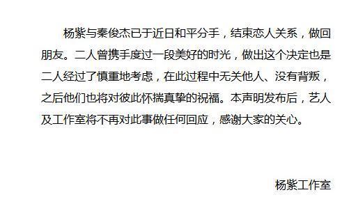 随后,秦俊杰与杨紫的责任室同步发布仳离声明。