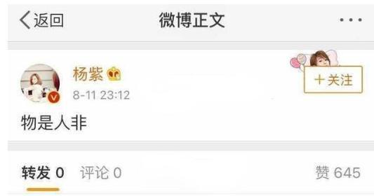风云未平,2018 年 8 月,杨紫一条“水流花落”的微博秒删。