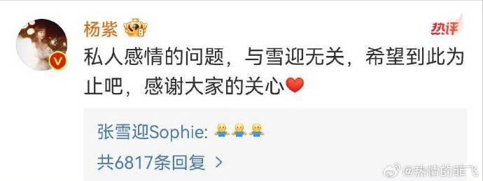 最终,杨紫半夜留言澄清“与雪迎无关”。