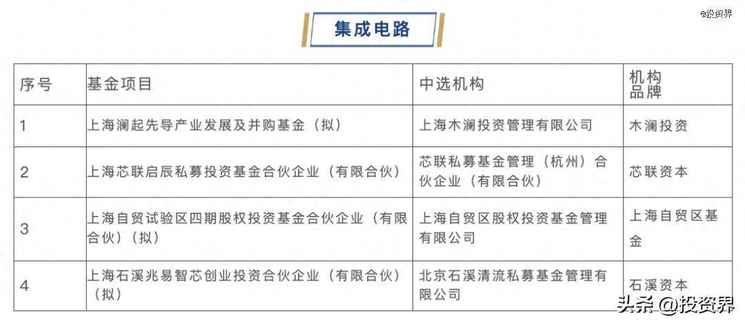 集成电路行业第三批彩选子基金共有4只中选,缠绵拟投决总和14亿元,放大倍数为5倍。其中芯联老本、石溪老本是集成电路产业大链主平直作念CVC,澜起科技是上海土产货的芯片想象龙头企业,本次发起确立一只并购政策为主的基金;自贸区基金是上海土产货国资科罚东谈主,深耕上海10年,背后泄露富乐德集团、前锋精科、赛好意思突分娩业方的身影。
