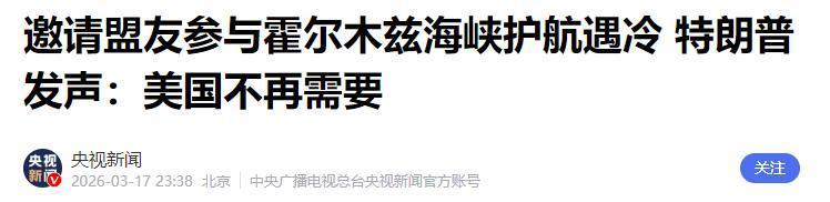 信息开头:央视新闻——邀请盟友参与霍尔木兹海峡护航遇冷 特朗普发声:好意思国不再需要