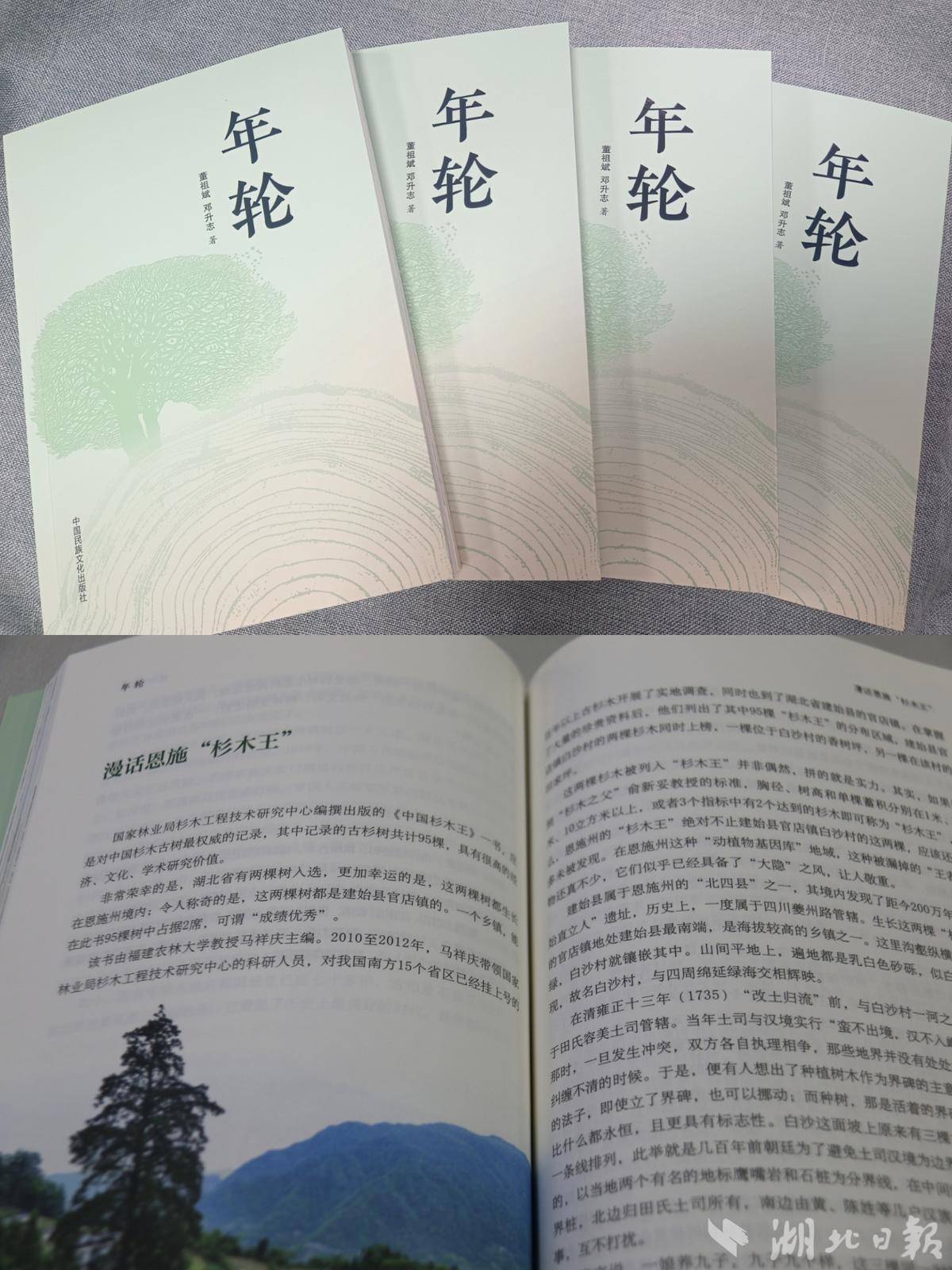 《年轮》是恩施州林业局统筹组织的生态体裁力作,由恩施州藏书楼董祖斌与恩施州林业局邓升志携手撰写。两位作者以恩施州32株古树名木为叙事中枢,用私有视角挖掘林木滋长中的时光钤记,以高深笔触串联起期间变迁的条理、东谈主文精神的温度与林学科普的深度。掀开书页,既有对古树年轮里人命细节的邃密无比描摹,更有对“绿水青山即是金山银山”理念的纯真体裁确认,读者既能在翰墨间感受散文的韵律之好意思,也能透过古树的故事,读懂丛林与生态安全的紧密相干,直不雅相识恩施“鄂西林海”的生态天资如何升沉为发展上风,显著原土生态资源的珍稀价值与长久后劲。