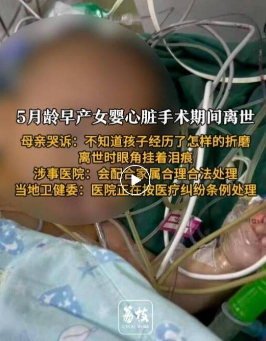 女婴经过数小时手术后,当晚凄凉示寂,家长敌手术经过及关联医陌生远质疑。宝宝离世时“眼角还挂着泪,嘴巴闭不牢。”