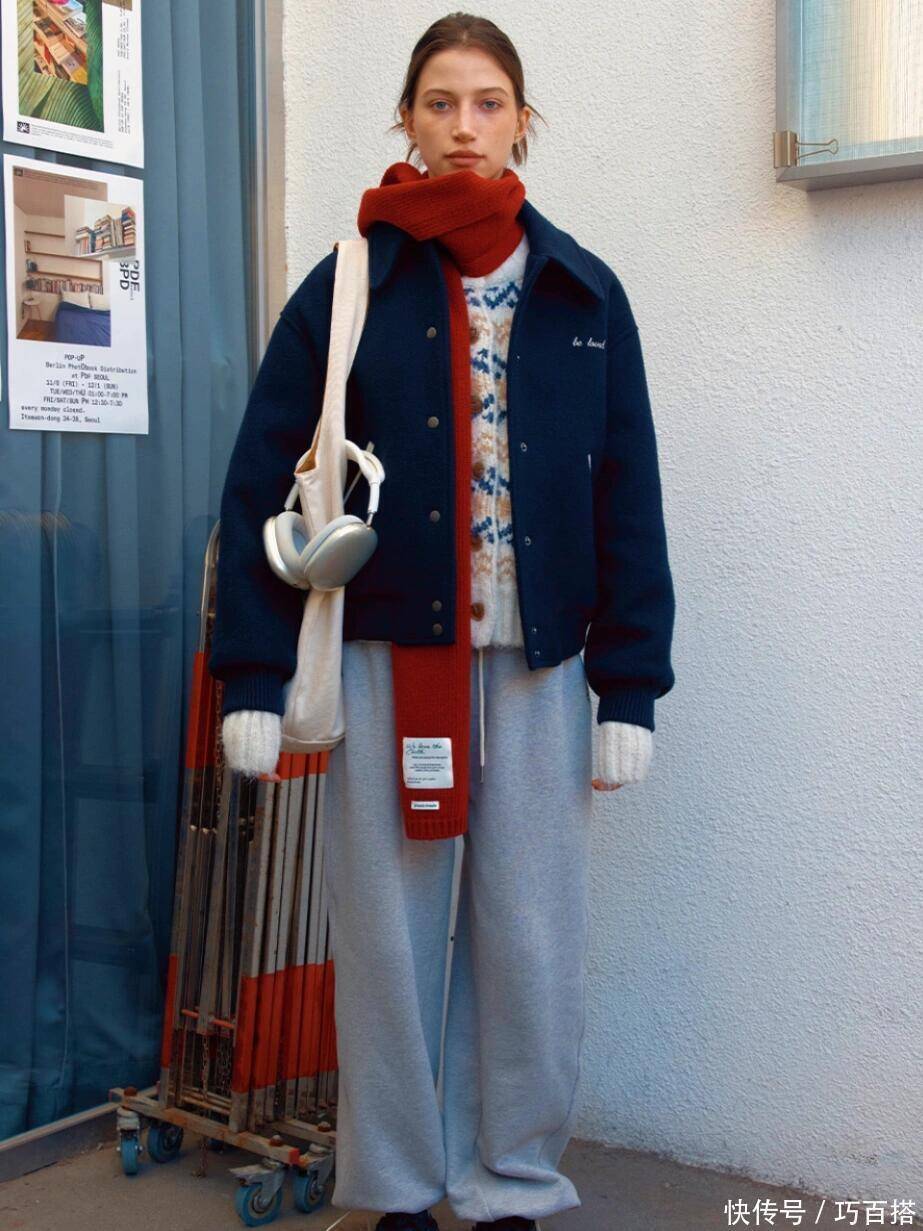 可爱中性凉爽但又不但愿整套造型禁欲、莫得情面味的姐妹,不错像博主同样选拔蓝色单品与红色领巾搭配。黑红配色的领巾与黑蓝造型搭配,息争斡旋又不俗气,平素外出拖沓不会撞衫。