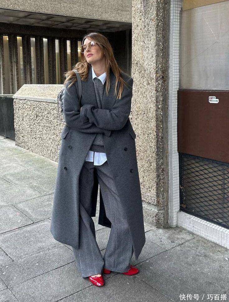 若是你和博主同样,适值有一对红色皮鞋,不错选拔搭配清凉气质的高等灰单品,像博主同样选拔灰色真挚毛衣叠搭灰色毛呢大衣,高冷又禁欲,气场十足,高个子姐妹学习鉴戒效能一绝。